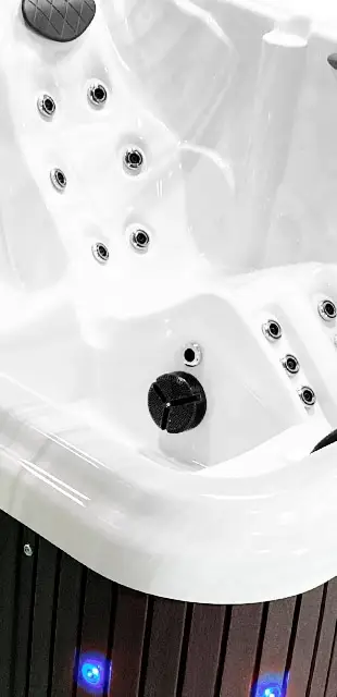 The A-L80 50-Jet spa, an embodiment of timeless A-Series design, presents a realm of relaxation. Standard with Strong Spas’ premium offerings like LED lighting, dual water columns, and an integrated ice bucket, this spa creates an inviting atmosphere for home leisure. For those seeking to immerse in pure relaxation after a demanding week, the A-L80 stands as the ultimate choice.