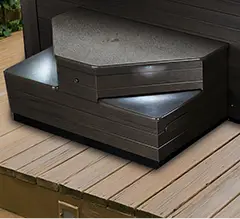 Made with non-slip surfacing, the SAFEAXISS™ Steps allow the user to access the hot tub from any angle with ease, while multiple tiers provide easy entry and exit. The steps are also insulated, and serve as a protective cover for the Energy Saver Management System.